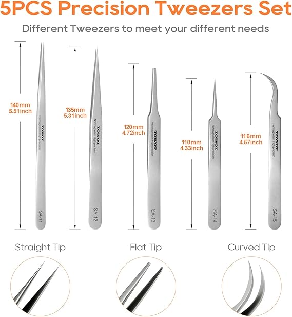 Fine Points: Sharp, precise tips for gripping minute components (e.g., IC pins, tiny screws).