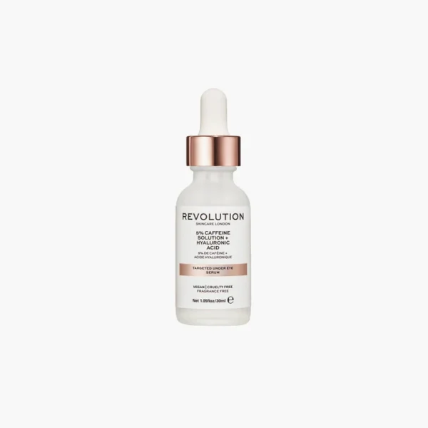 Revive and refresh tired-looking eyes with Revolution Skincare Targeted Under Eye Serum. Specially formulated with a powerful blend of Caffeine and Hyaluronic Acid, this lightweight serum is designed to combat common under-eye concerns such as dark circles, puffiness, and fine lines caused by dehydration.