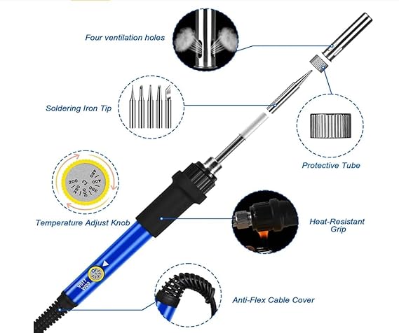 Variable Temperature Control: Allows you to adjust the heat according to different soldering needs.